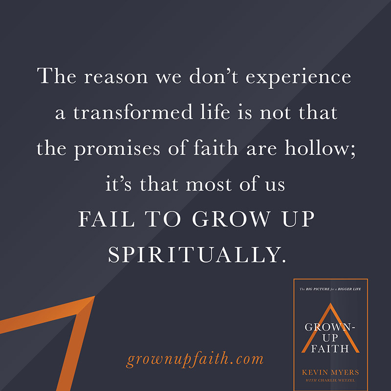 Kevin Myers, the founding pastor of 12Stone Church, a congregation of more than 30,000 active attenders near Atlanta, believes the reason we don't experience a transformed life is that we fail to grow up spiritually. We focus on developing physically, intellectually, emotionally, and financially, yet our faith remains immature and anemic.